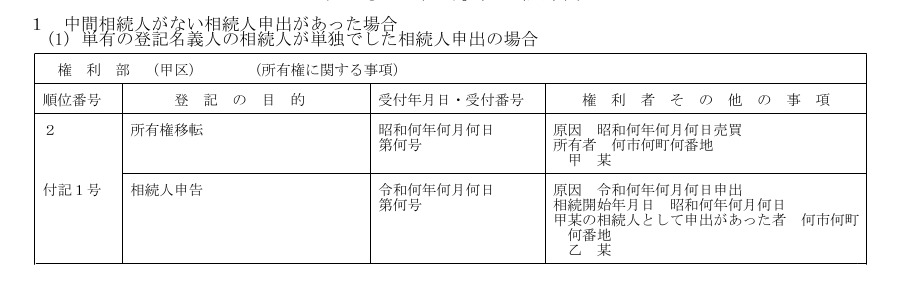 この申し出により、相続開始年月日、申出があった相続人住所・氏名が登記記録に付記されます。